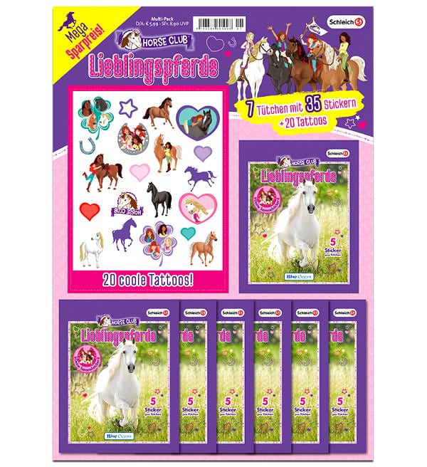 • Horse Club Lieblingspferde Sticker - Multipack mit 7 Tüten + 20 Tattoos