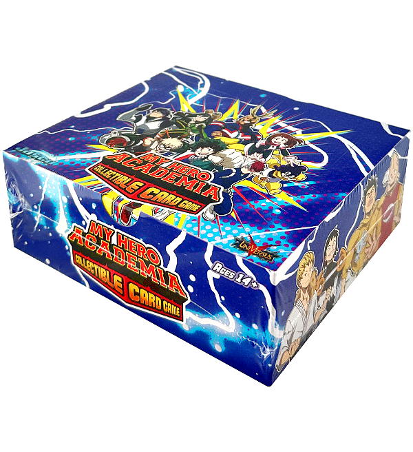 Display mit 24 Tüten zur "My Hero Academia Collectible Card Game - Series 01" Kollektion. Jeder Booster enthält 10 Karten, somit sind in der Box insgesamt 240 Cards enthalten.