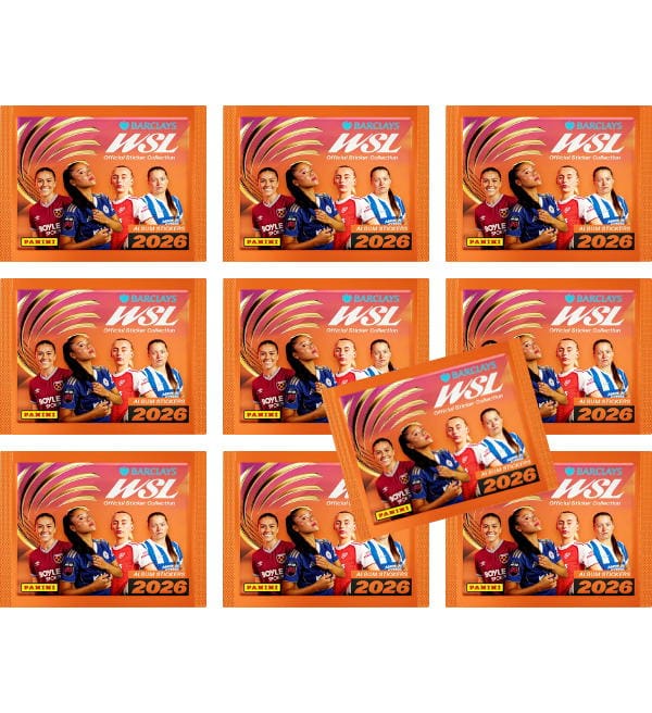10 Tüten aus der Panini Barclays Women’s Super League 2026 Sticker-Kollektion. Jede Tüte enthält 5 Sammelbilder.