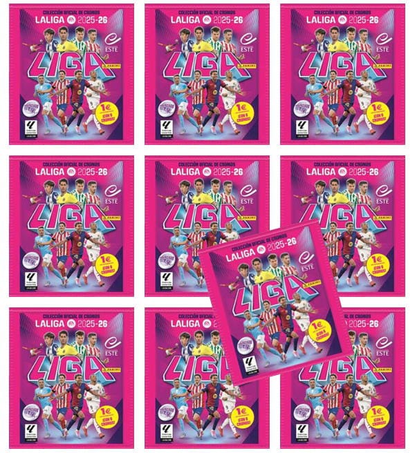 10 Tüten zur "Panini LaLiga 2025/2026" Sticker-Kollektion. Jede Tüte enthält 8 Sticker zur Primera División.