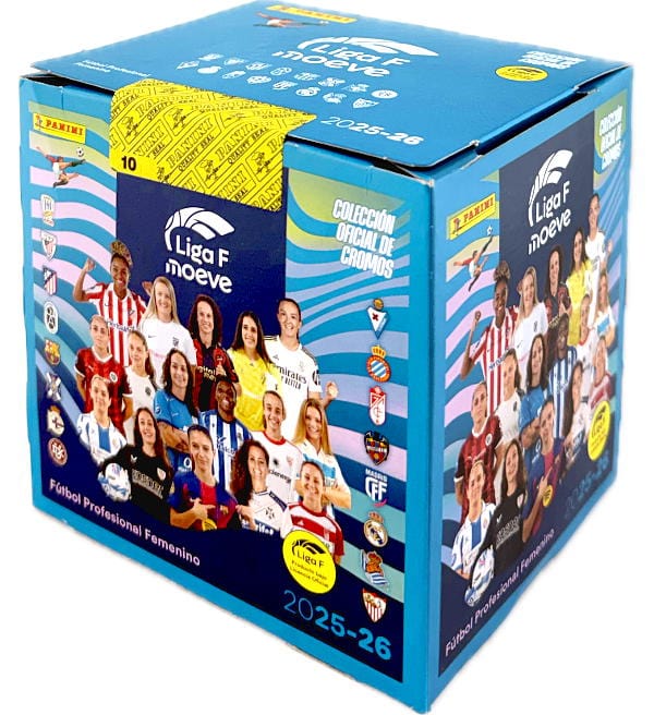 1 Display (=50 Tüten) aus der Panini Liga Femenina 2025/26 (Liga F) Sticker-Kollektion. Jede Tüte enthält 8 Sammelbilder.