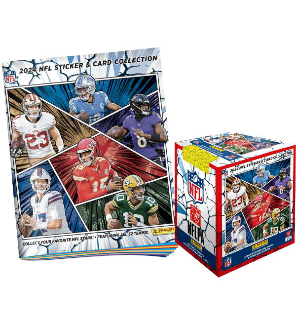Album + 1 Display (=50 Tüten) aus der "Panini NFL 2024" Sticker & Cards Kollektion. Jede Tüte enthält 5 Klebebilder + 1 Trading Card.