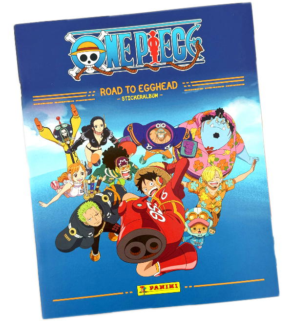 Sammelalbum + 1 Display mit 36 Tüten aus der "Panini One Piece - Road to Egghead" Sticker-Kollektion. Insgesamt können 204 Sticker gesammelt werden.