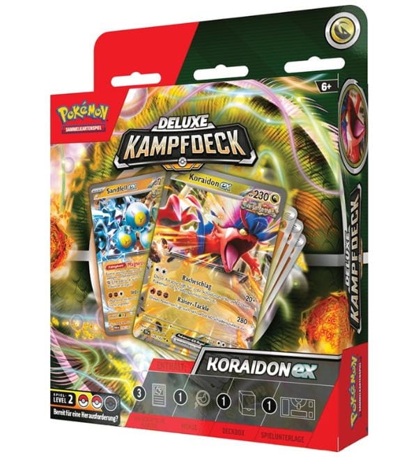 Das Pokemon Deluxe Kampfdeck "Koraidon EX" mit folgendem Inhalt: