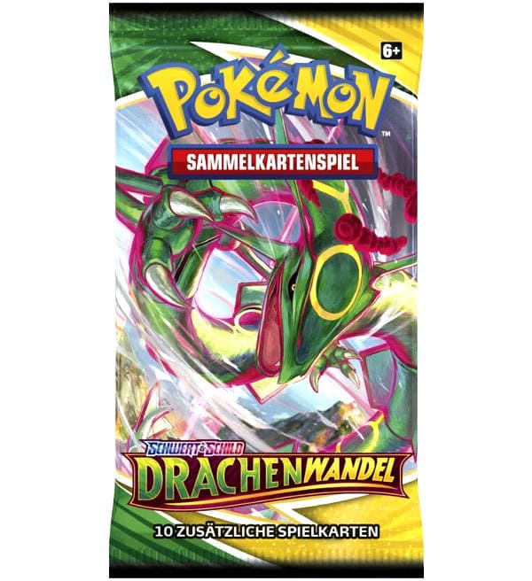Ein Booster mit 10 Pokemon Karten aus dem Set "Schwert & Schild 7 - Drachenwandel". Die Auswahl des Artworks erfolgt zufällig.