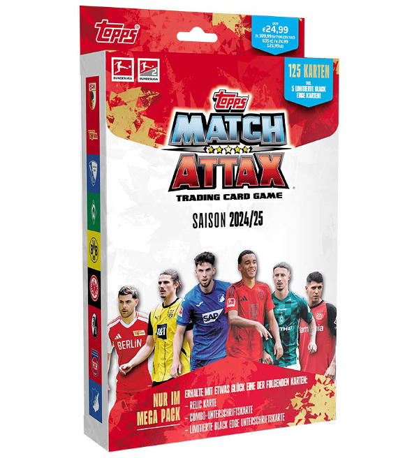 Megapack zur Topps Bundesliga Match Attax 2024/25 Trading Card Serie mit folgendem Inhalt: