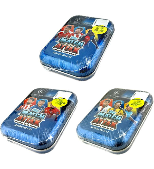 Mini Tin Set zur Topps Champions League Match Attax 2016/17 Trading Cards Kollektion. Jede Pocket Tin enthält 35 Karten + 1 Limited Edition Card.
