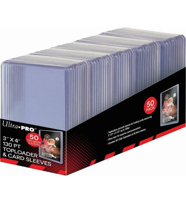 Superklare, superdicke 3" x 4" Toploader und Card Sleeves für dicke Karten in Standardgröße (2-1/2" x 3-1/2") bis zu einer Dicke von 130pt. Der Toploader besteht aus festem Kunststoff, der die Karte umschließt, sie sauber hält und gleichzeitig Beschädigungen verhindert. Die Hülle bietet zusätzlichen Schutz und ist archivtauglich, PVC-frei und säurefrei. In der Packung sind 50 130pt-Toploader und 50 Sleeves für dicke Karten enthalten.