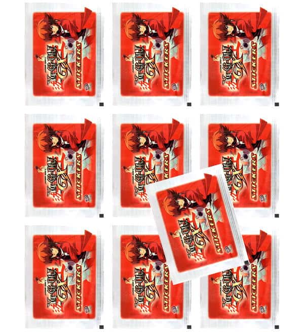 10 Tüten aus der "Yu-Gi-Oh! GX Series 1" Sticker-Kollektion. Jede Tüte enthält 5 Sammelbilder.